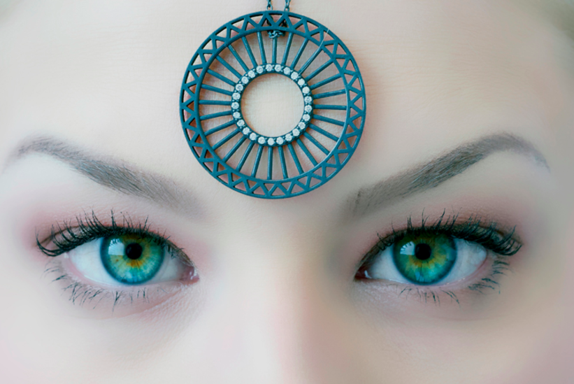 For client Ellie Thompson, my vision was to create images where the jewelry, and not the model, was the star. I used Ellie's jewels in unusual ways, not always as they were intended to be worn, to call attention to their forms and surfaces, almost as if the models were mere props for the jewelry.